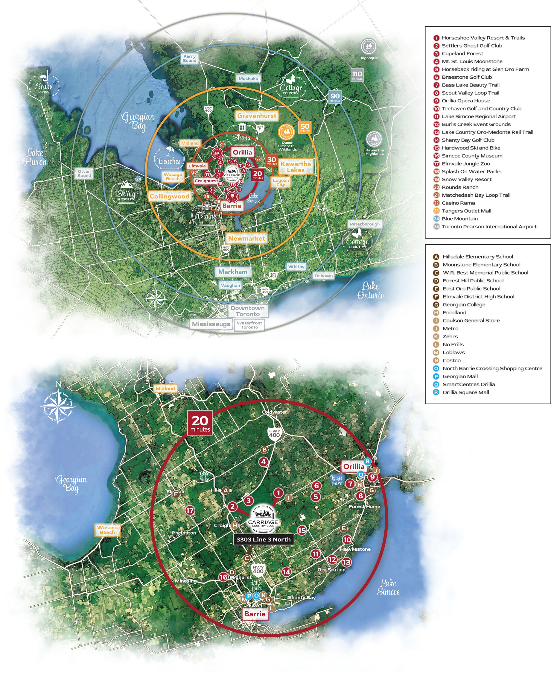 Tee off, hit the slopes, hike a trail or make a splash. Explore the unique shops and fabulous restaurants nearby. Visit Casino Rama. Enjoy a night at the opera. Or surprise the family with an outing to the beach, water park, or Elmvale Jungle Zoo.